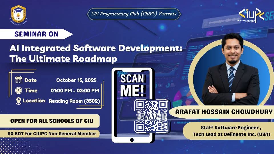 Weโ€™re beyond thrilled to welcome Mr. Sakibur Rahaman Chowdhury, Senior Software Engineer at Turing.com, California, USA, to CIU! Known for his incredible journey and powerful insights, heโ€™s all set to guide us through the world of remote jobs and freelancing โ€” a golden chance for students to level up and stand out globally!